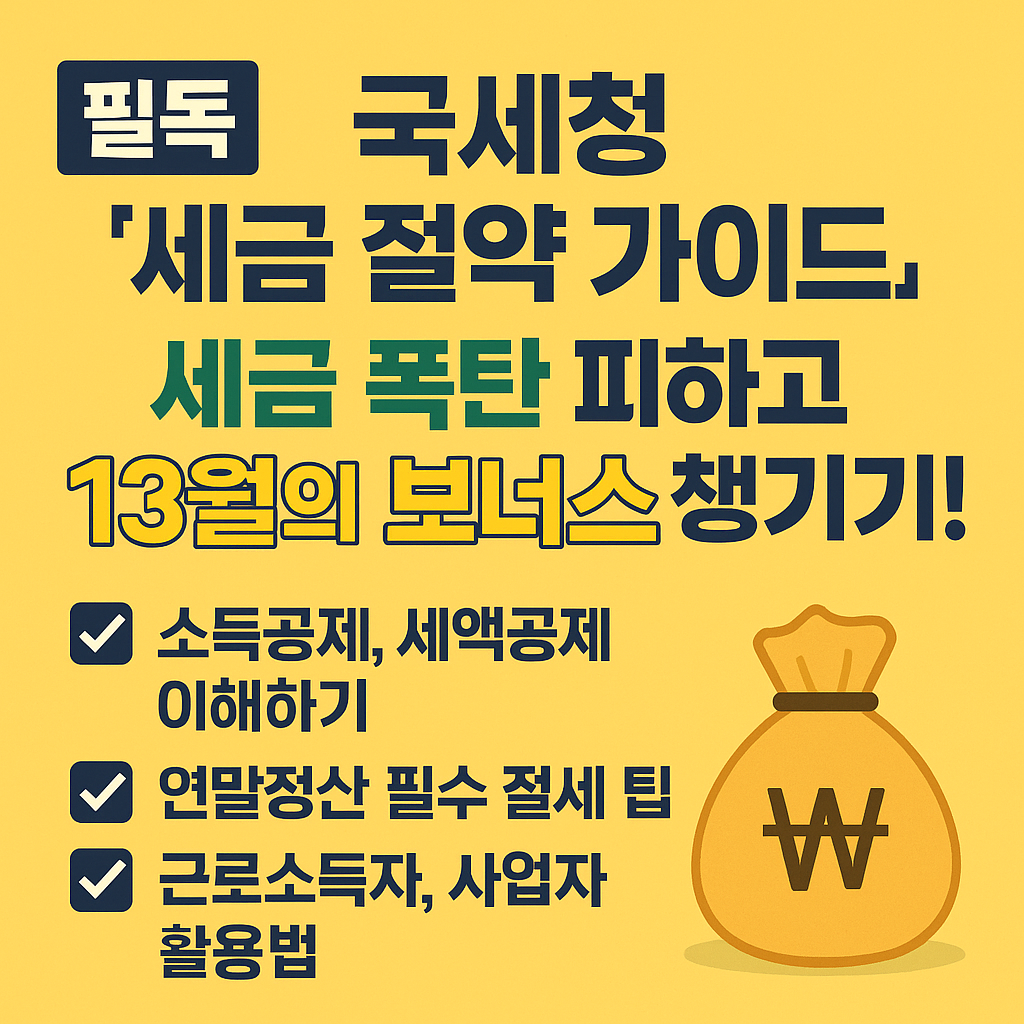 국세청의 '세금 절약 가이드'는 단순한 정보가 아니라, 우리의 소중한 자산을 지키는 합법적인 절세 무기입니다.